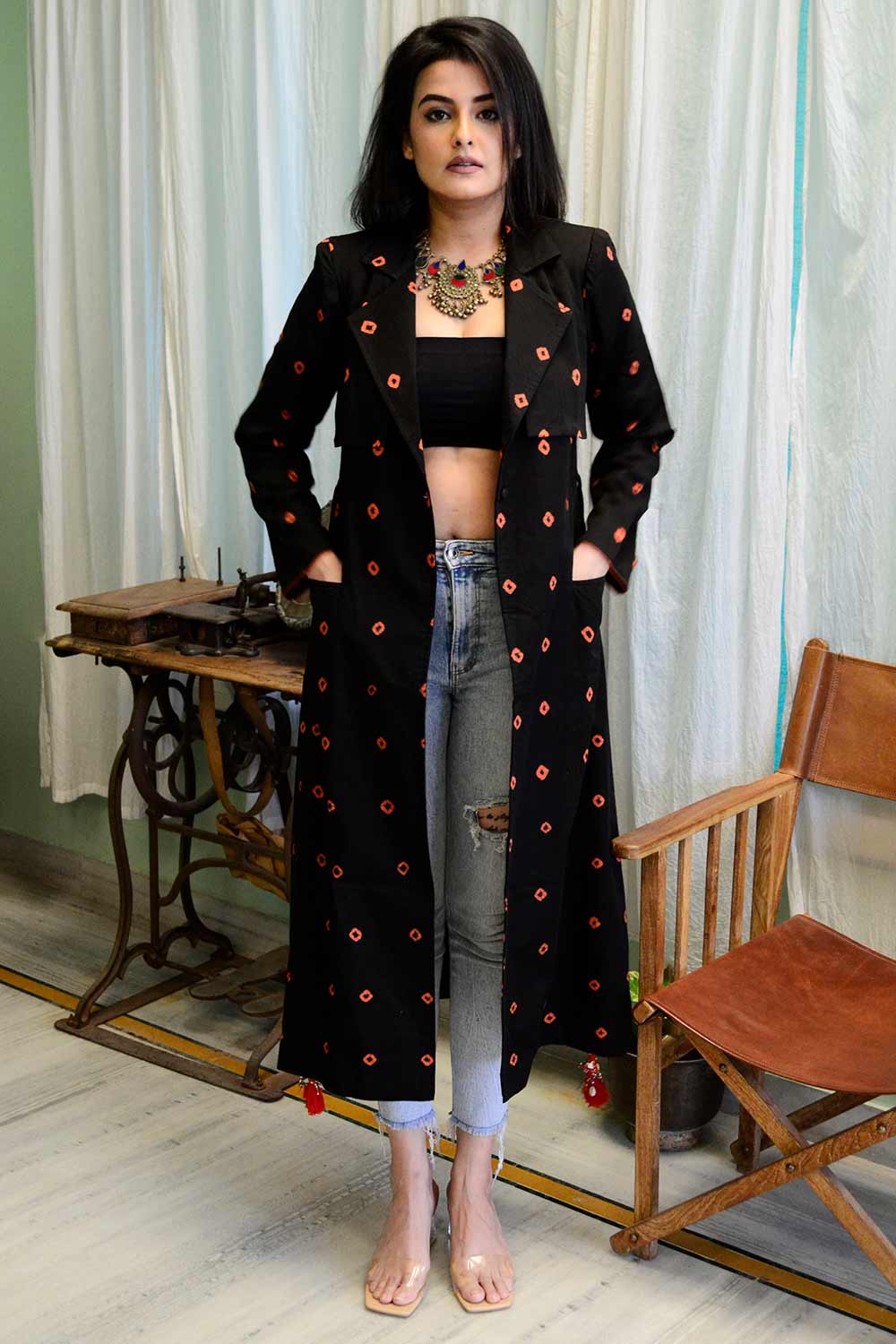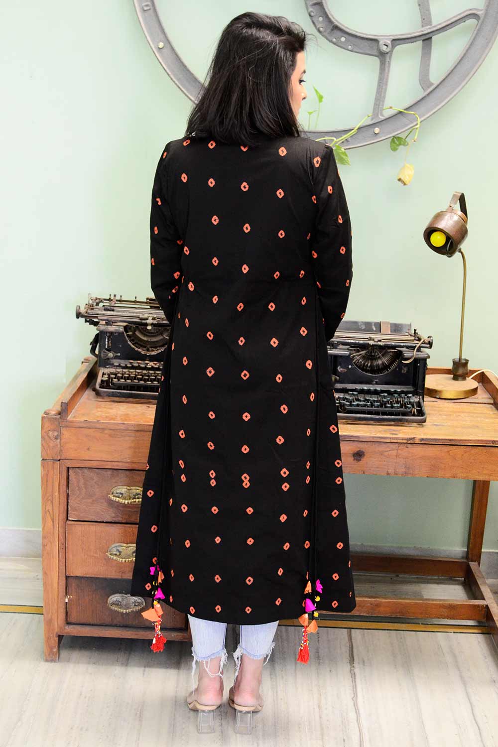 For bandhej, the fabric to be dyed is tied very tightly at different points and then dyed with extraordinary colours. These knots then don't let that part catch colour and allow it to stay as the base colour of the fabric.