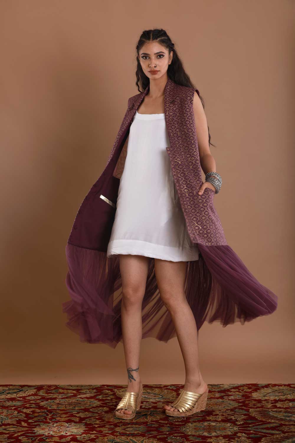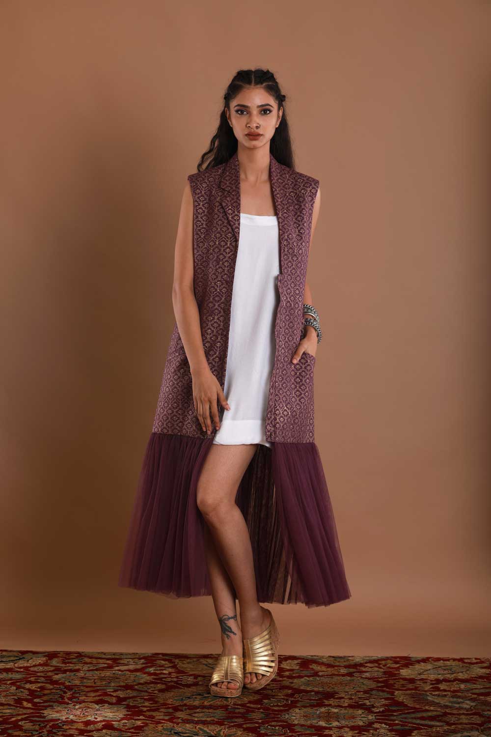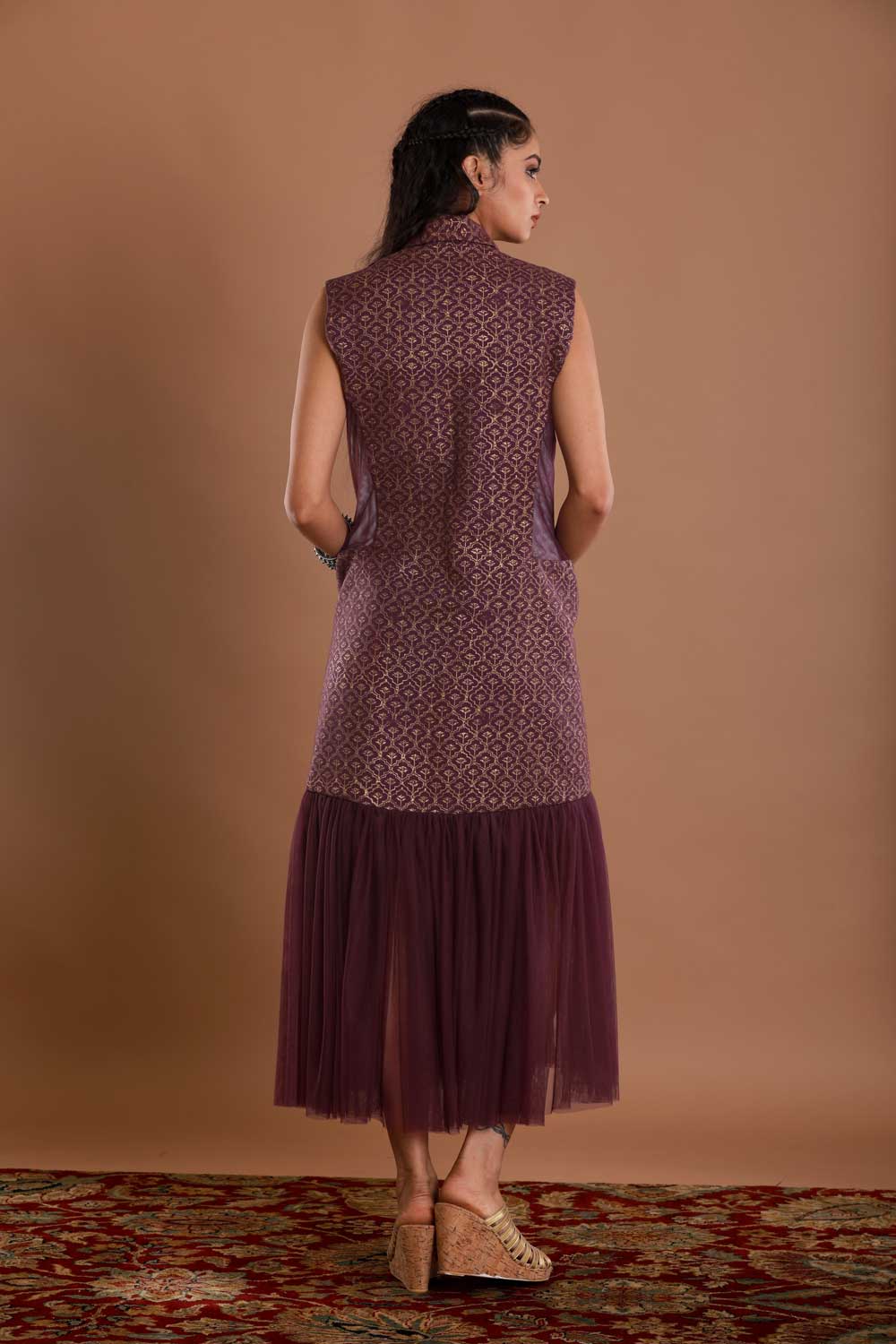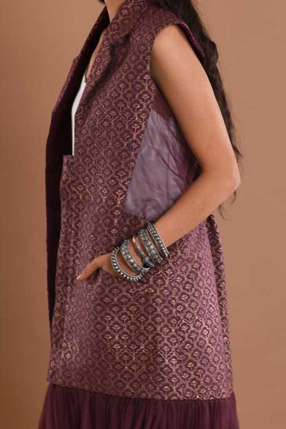 Block Printed Wine Tulle Jacket