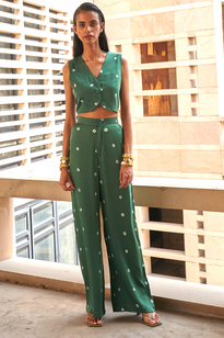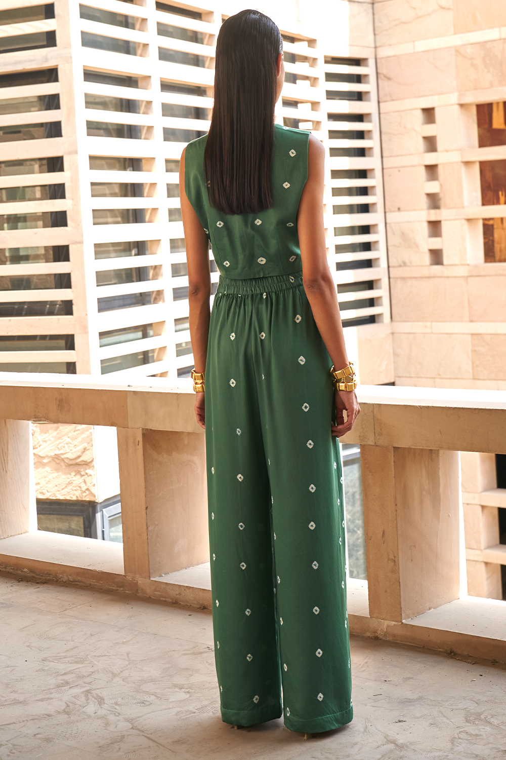 For bandhej, the fabric to be dyed is tied very tightly at different points and then dyed with extraordinary colours. These knots then don't let that part catch colour and allow it to stay as the base colour of the fabric.