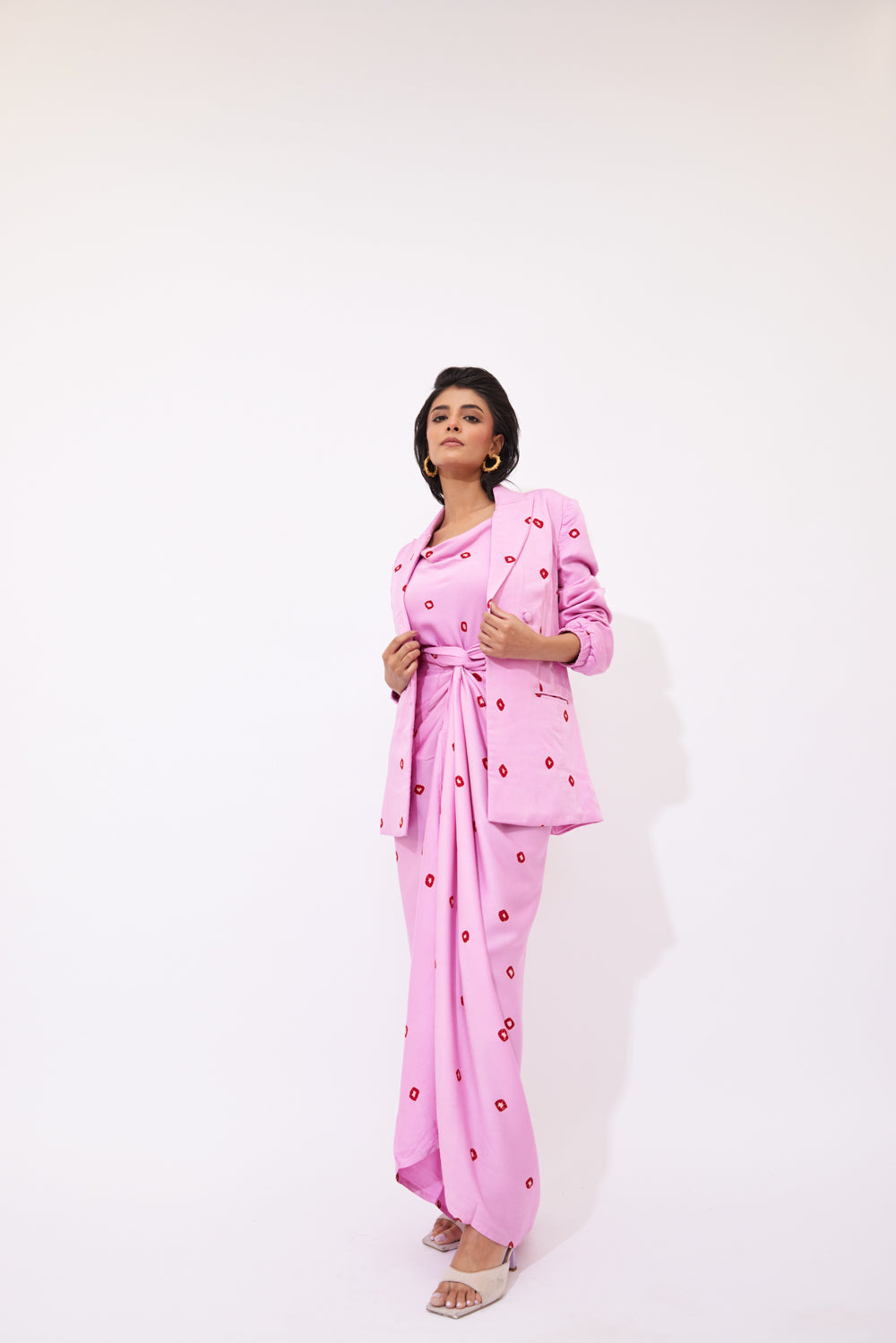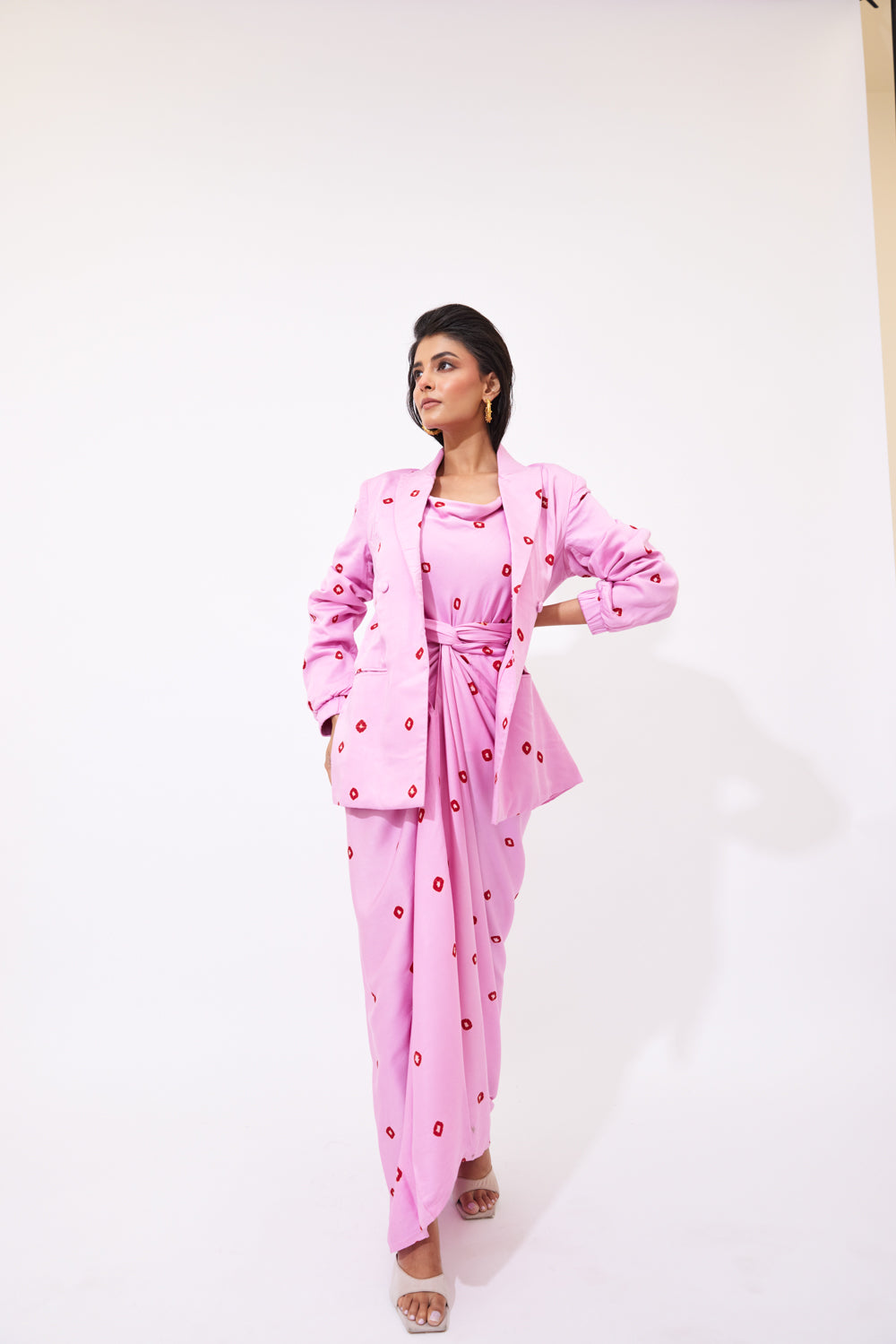 For bandhej, the fabric to be dyed is tied very tightly at different points and then dyed with extraordinary colours. These knots then don't let that part catch colour and allow it to stay as the base colour of the fabric.