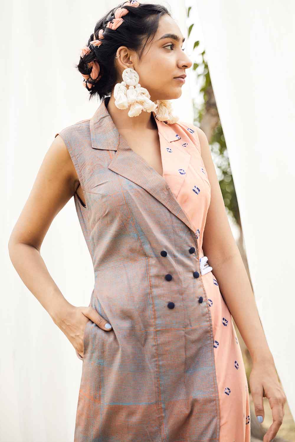 Block Printed And Bandhej Blazer Dress as seen on Shweta Tripathi