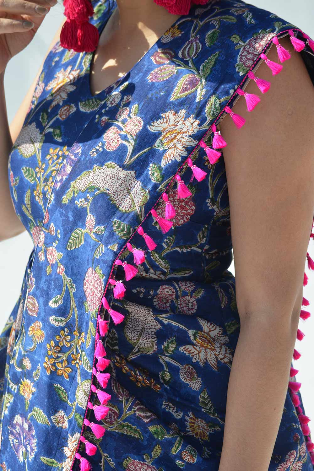 Block printing is a traditional technique of using engraved wooden blocks for printing designs on fabrics. The blocks are dipped in natural or artificial colours before being imprinted.