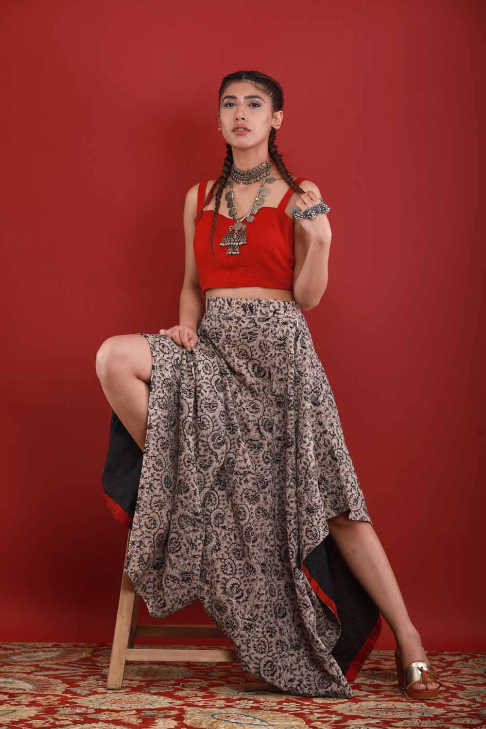 Block printing is a traditional technique of using engraved wooden blocks for printing designs on fabrics. The blocks are dipped in natural or artificial colours before being imprinted.