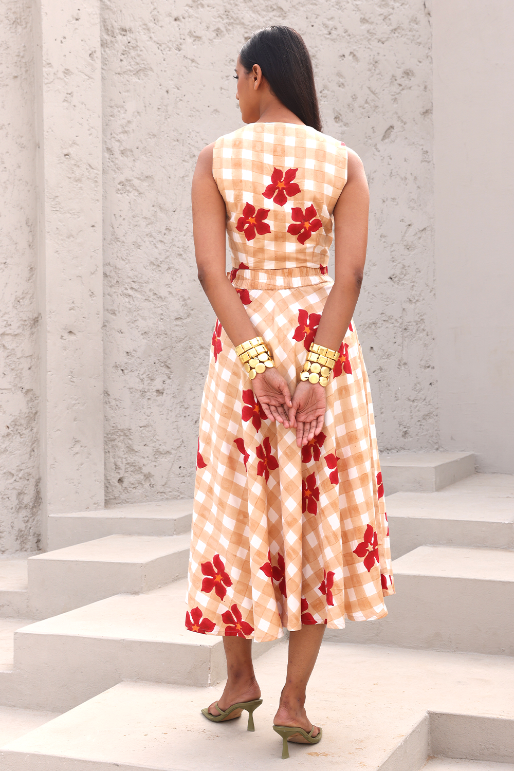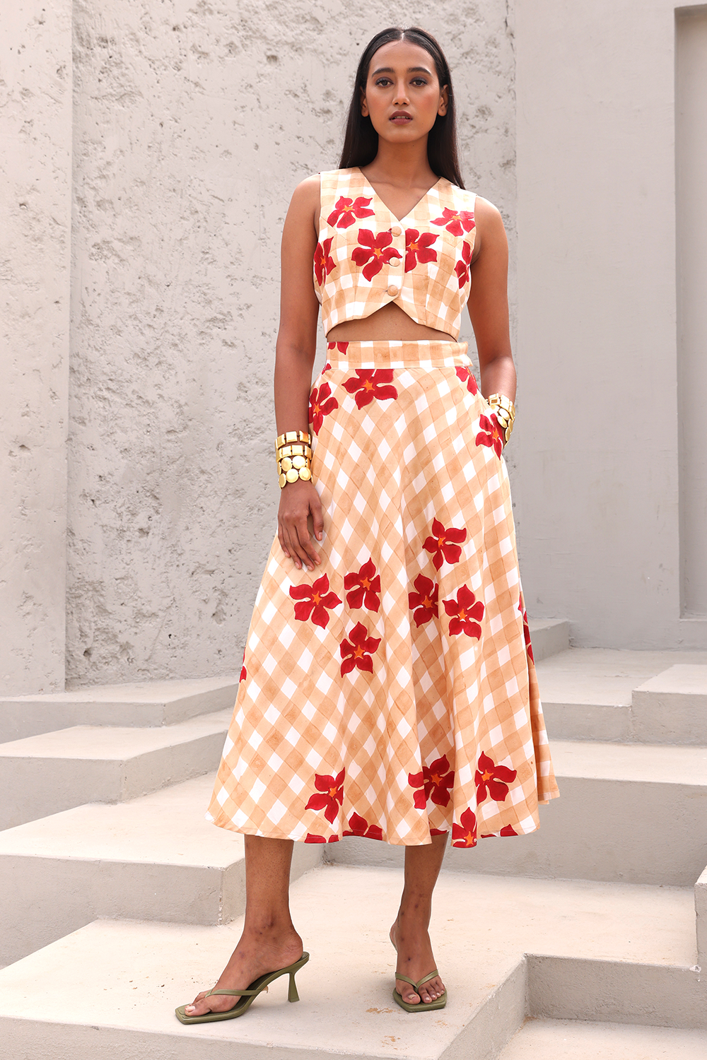 Block printing is a traditional technique of using engraved wooden blocks for printing designs on fabrics. The blocks are dipped in natural or artificial colours before being imprinted.