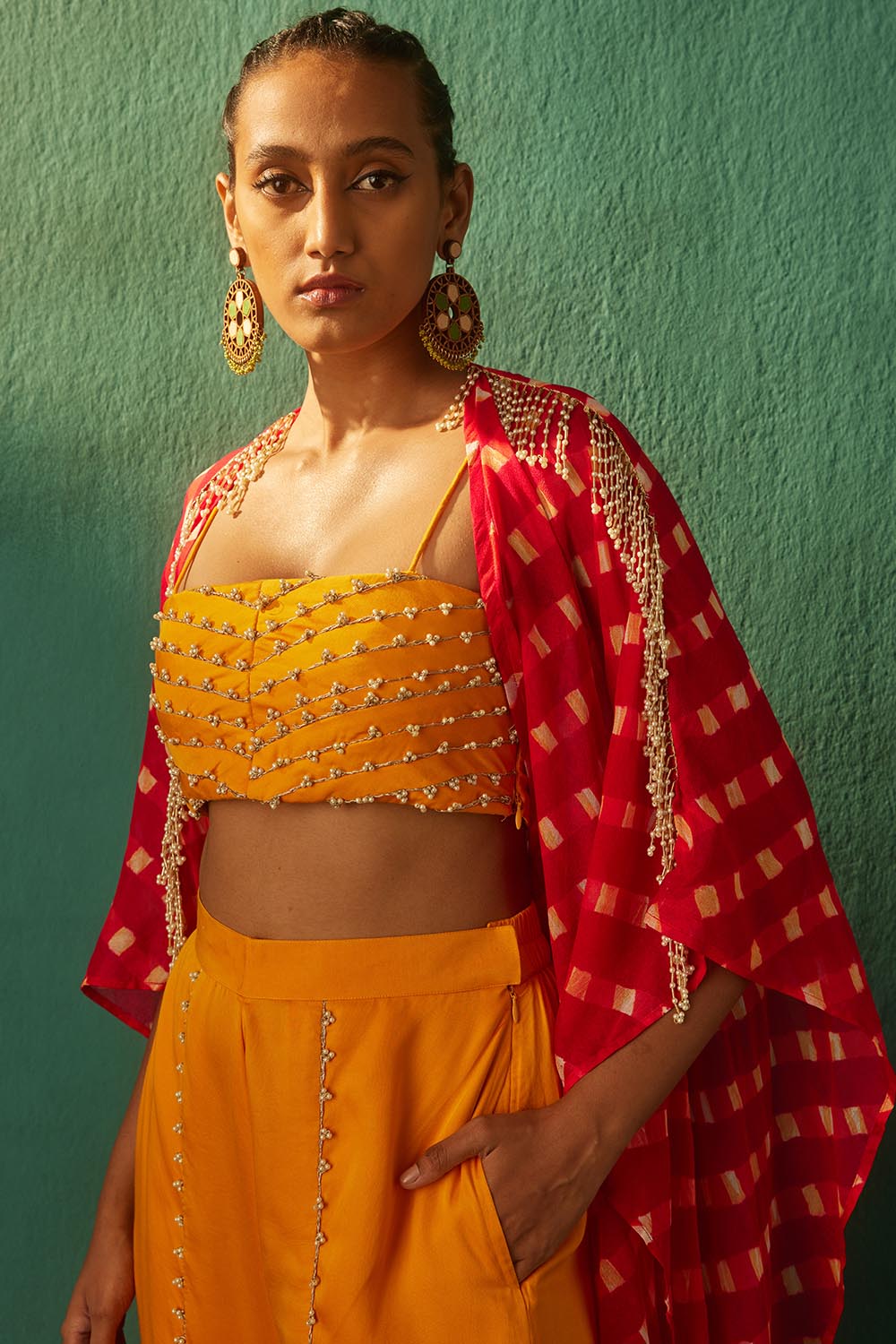 This traditional technique involves tying small sections of fabric before dyeing, resulting in distinctive patterns like tiny dots or squares spread across the material, creating a visually captivating texture. Each Mothda piece becomes a masterpiece due to the tie-dye method, showcasing individuality through its unique patterns and colors, making it a beloved choice for those seeking distinctive and eye-catching textiles.