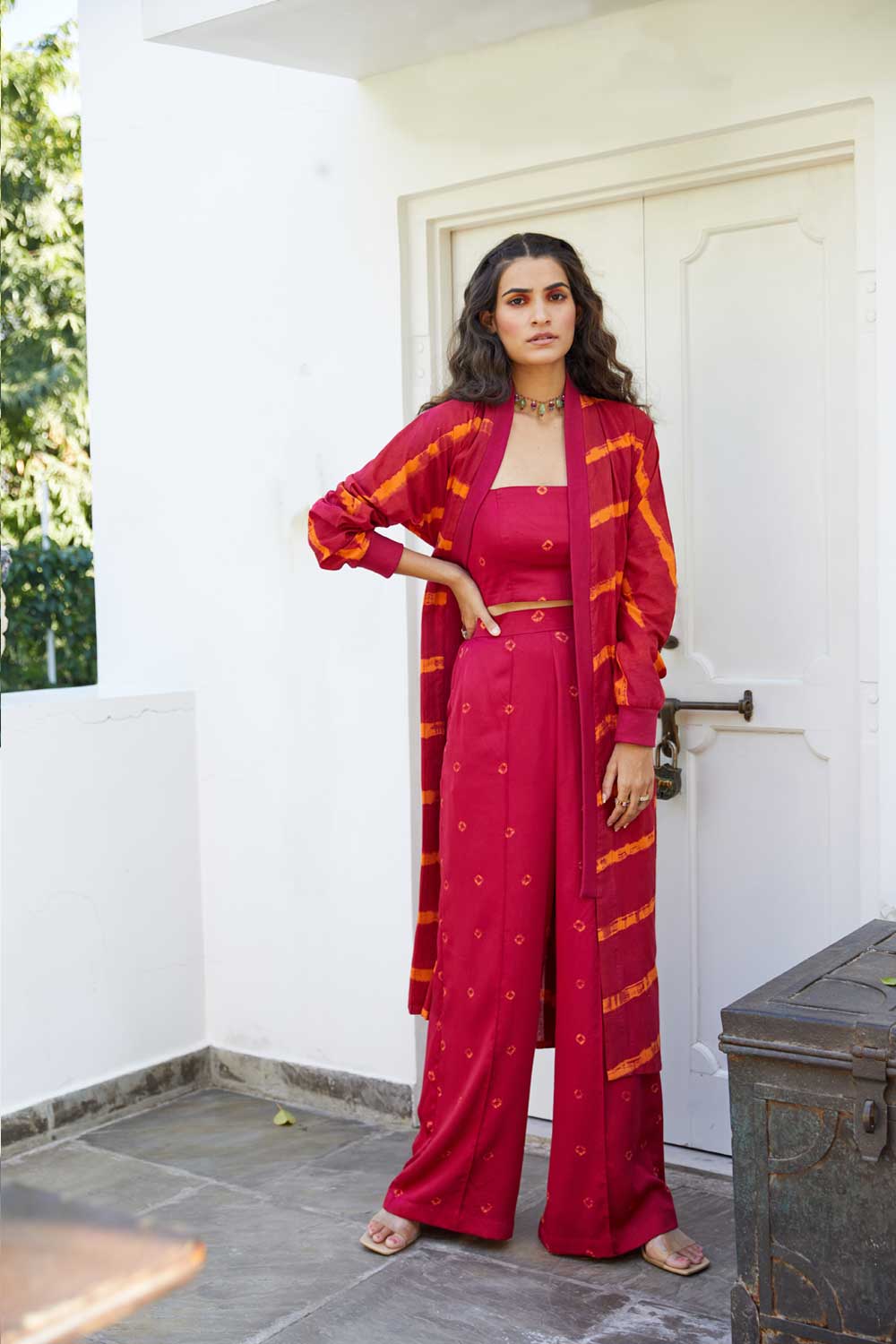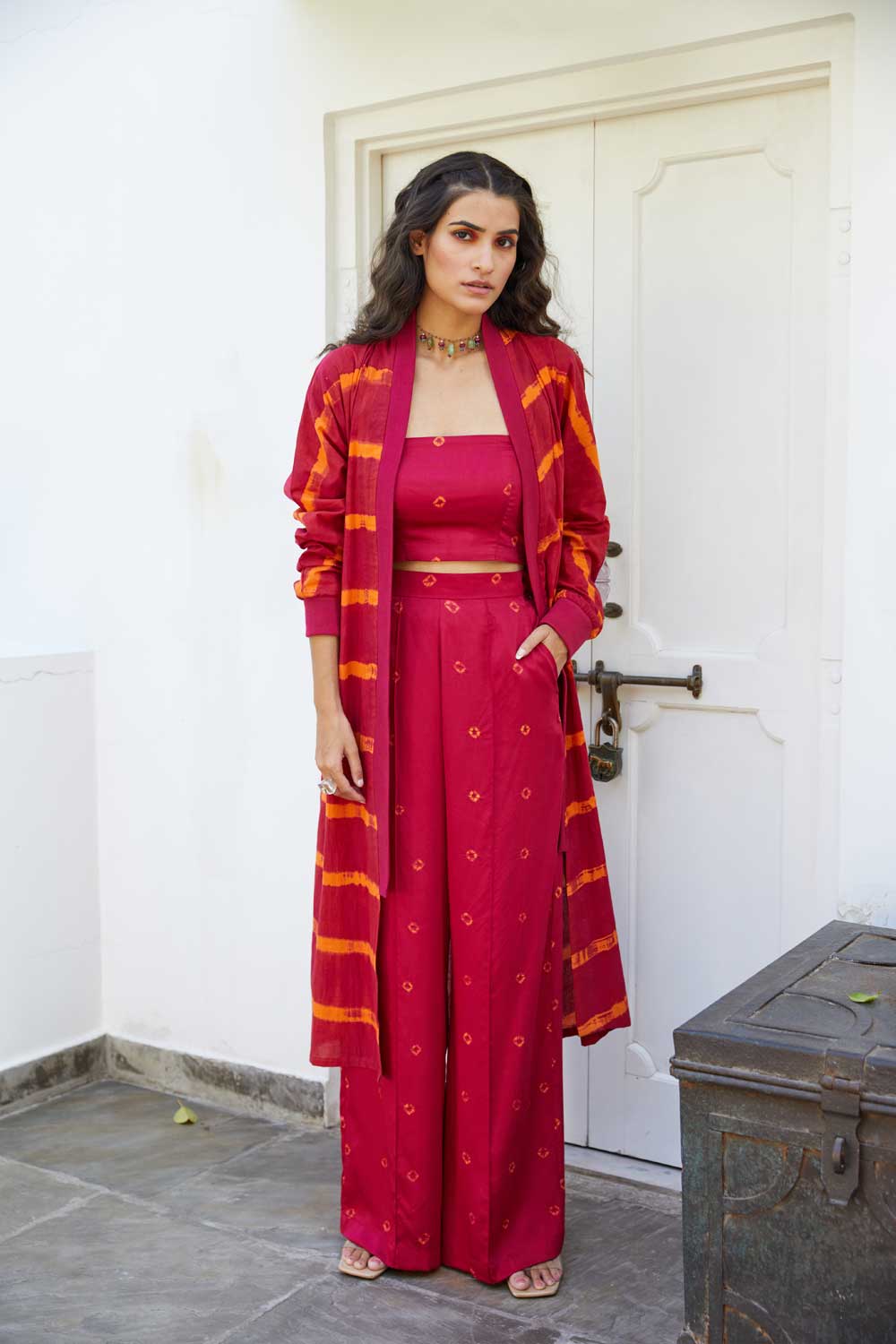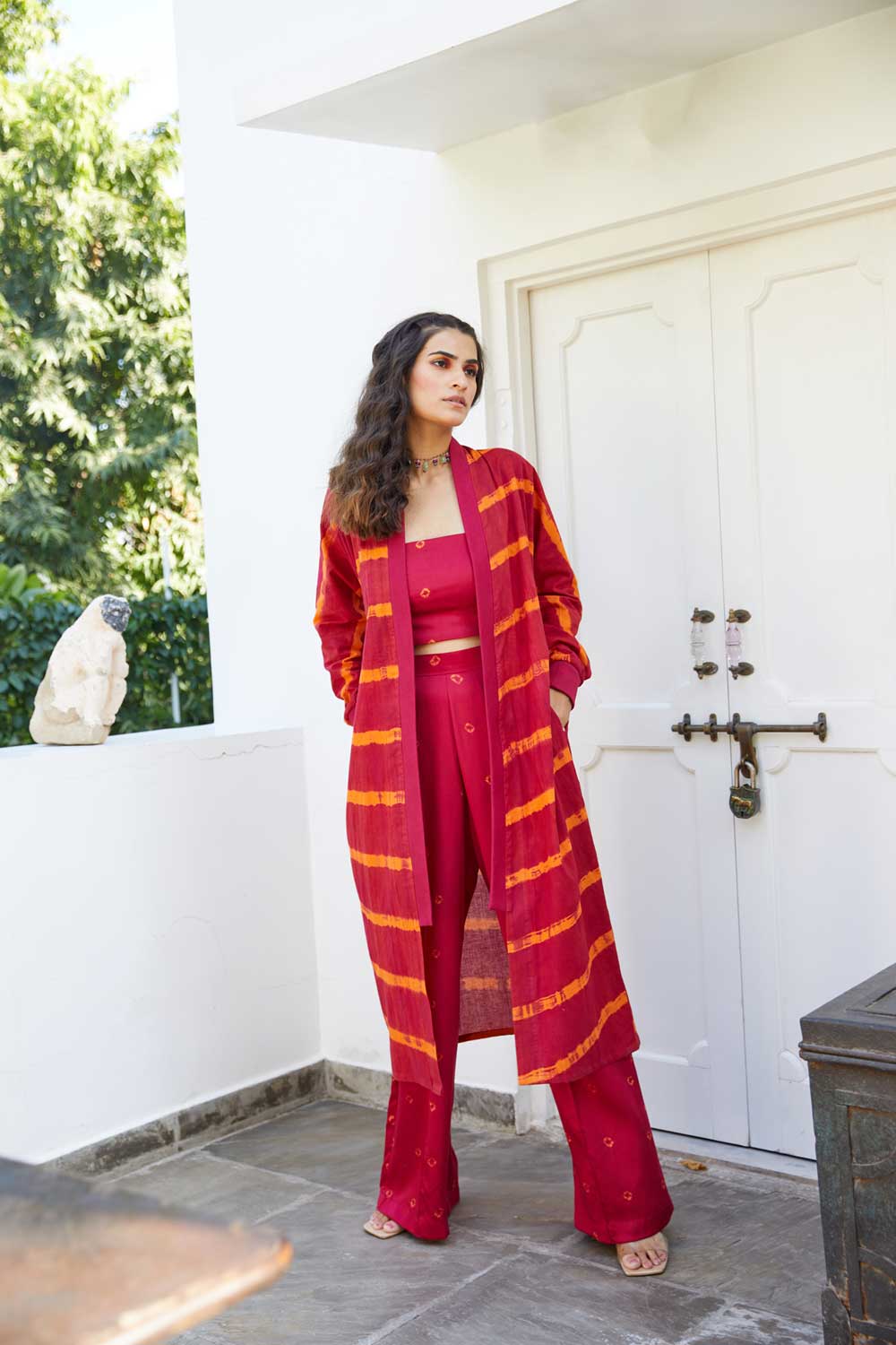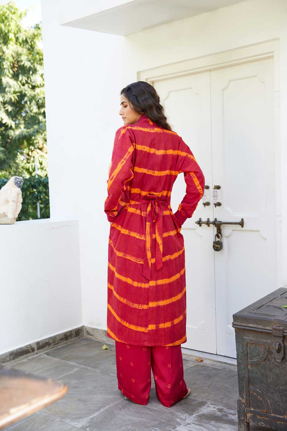 Leheriya is the wavy pattern created by tying and dyeing of fabric. The material is usually rolled diagonally or folded and then resisted by thread in the desired pattern before dyeing.