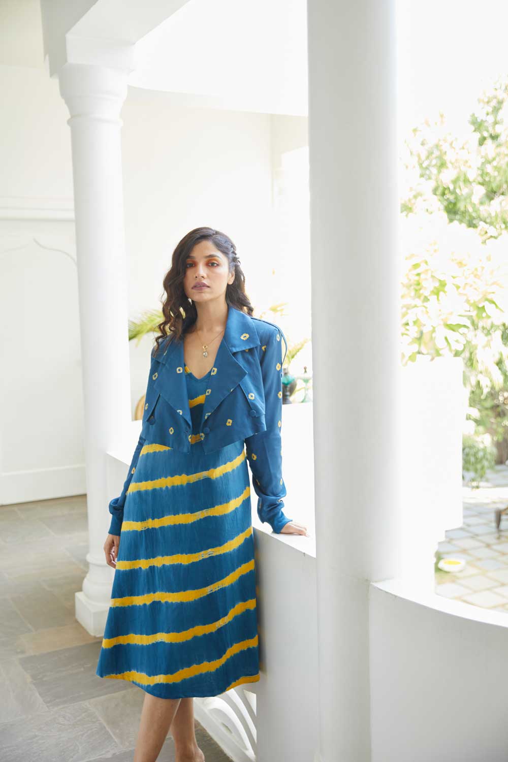 Leheriya is the wavy pattern created by tying and dyeing of fabric. The material is usually rolled diagonally or folded and then resisted by thread in the desired pattern before dyeing.
