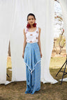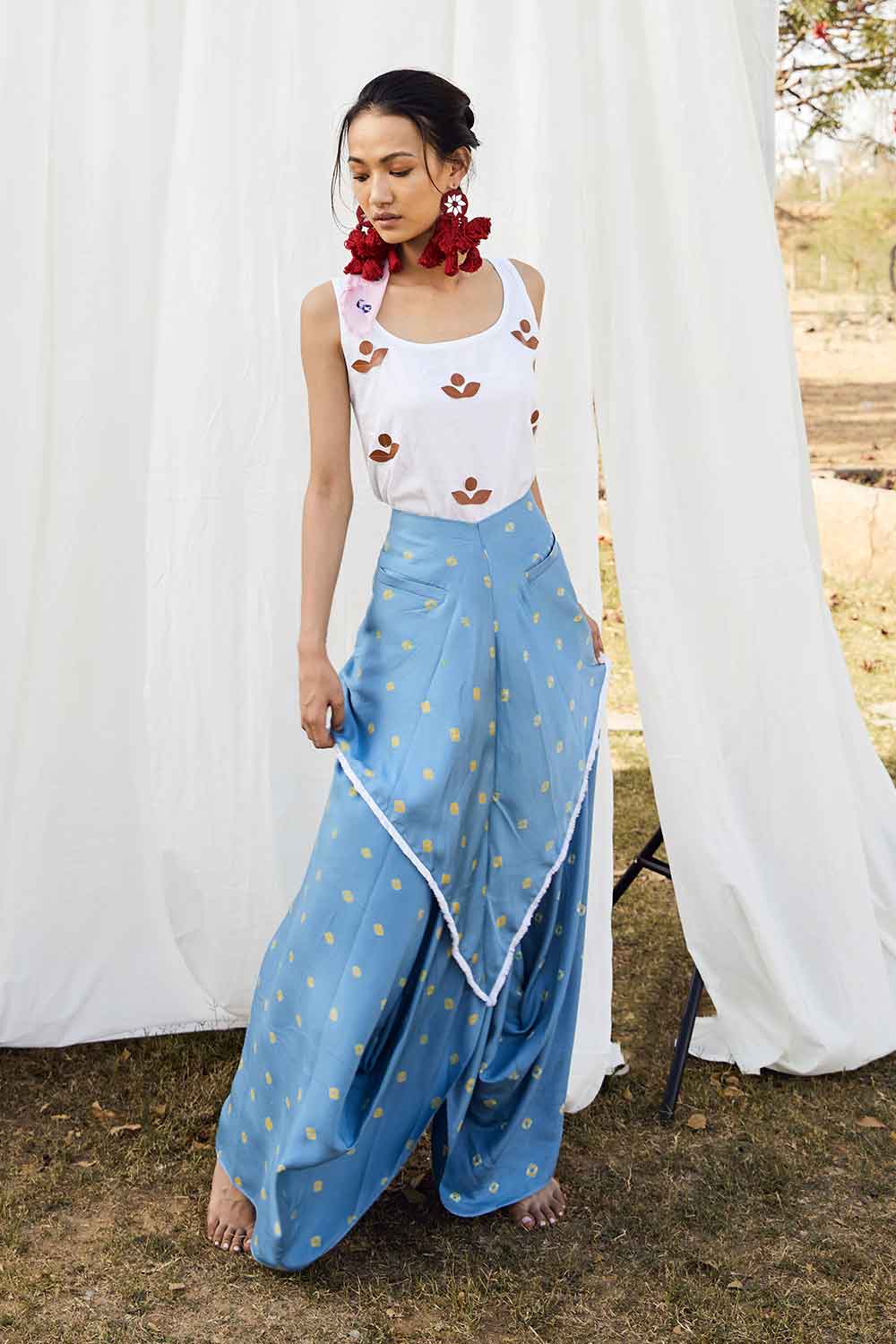 For bandhej, the fabric to be dyed is tied very tightly at different points and then dyed with extraordinary colors. These knots then don't let that part catch color and allow it to stay as the base color of the fabric.