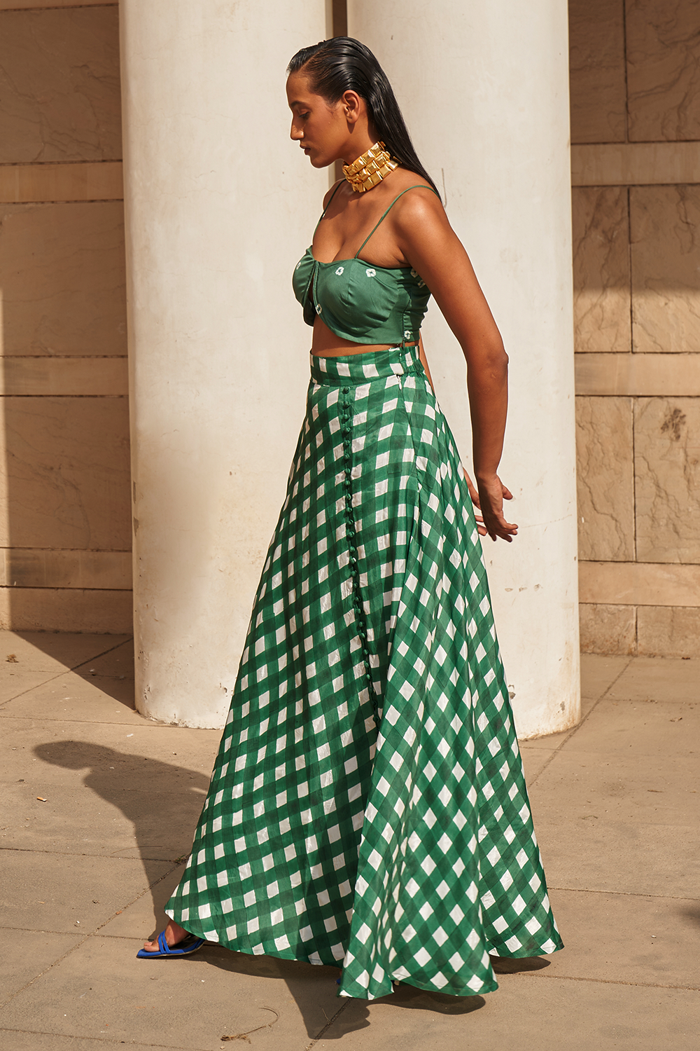 Block printing is a traditional technique of using engraved wooden blocks for printing designs on fabrics. The blocks are dipped in natural or artificial colours before being imprinted.