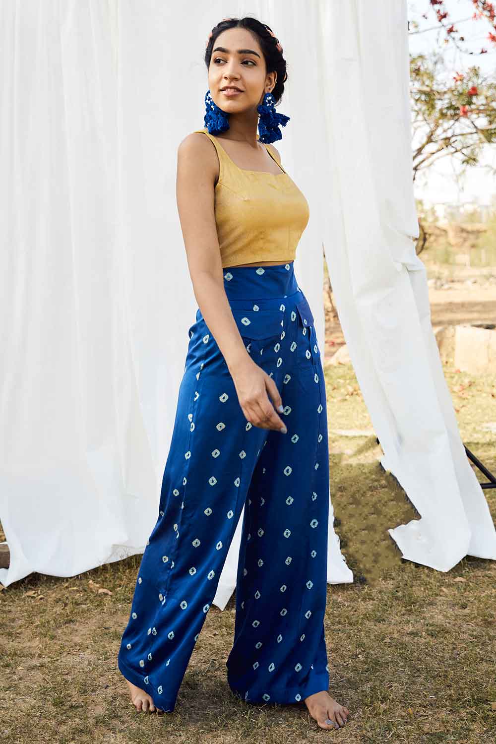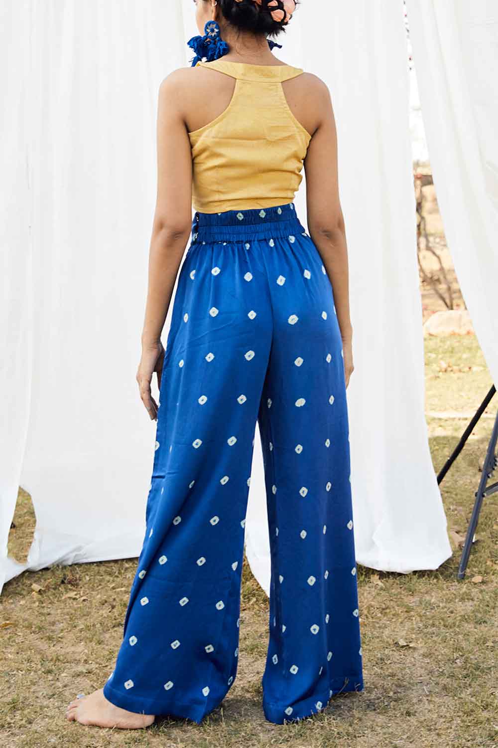 For bandhej, the fabric to be dyed is tied very tightly at different points and then dyed with extraordinary colors. These knots then don't let that part catch color and allow it to stay as the base color of the fabric.