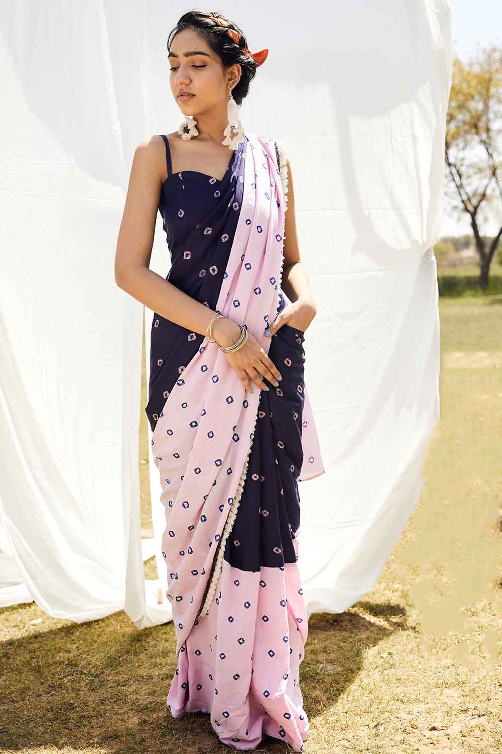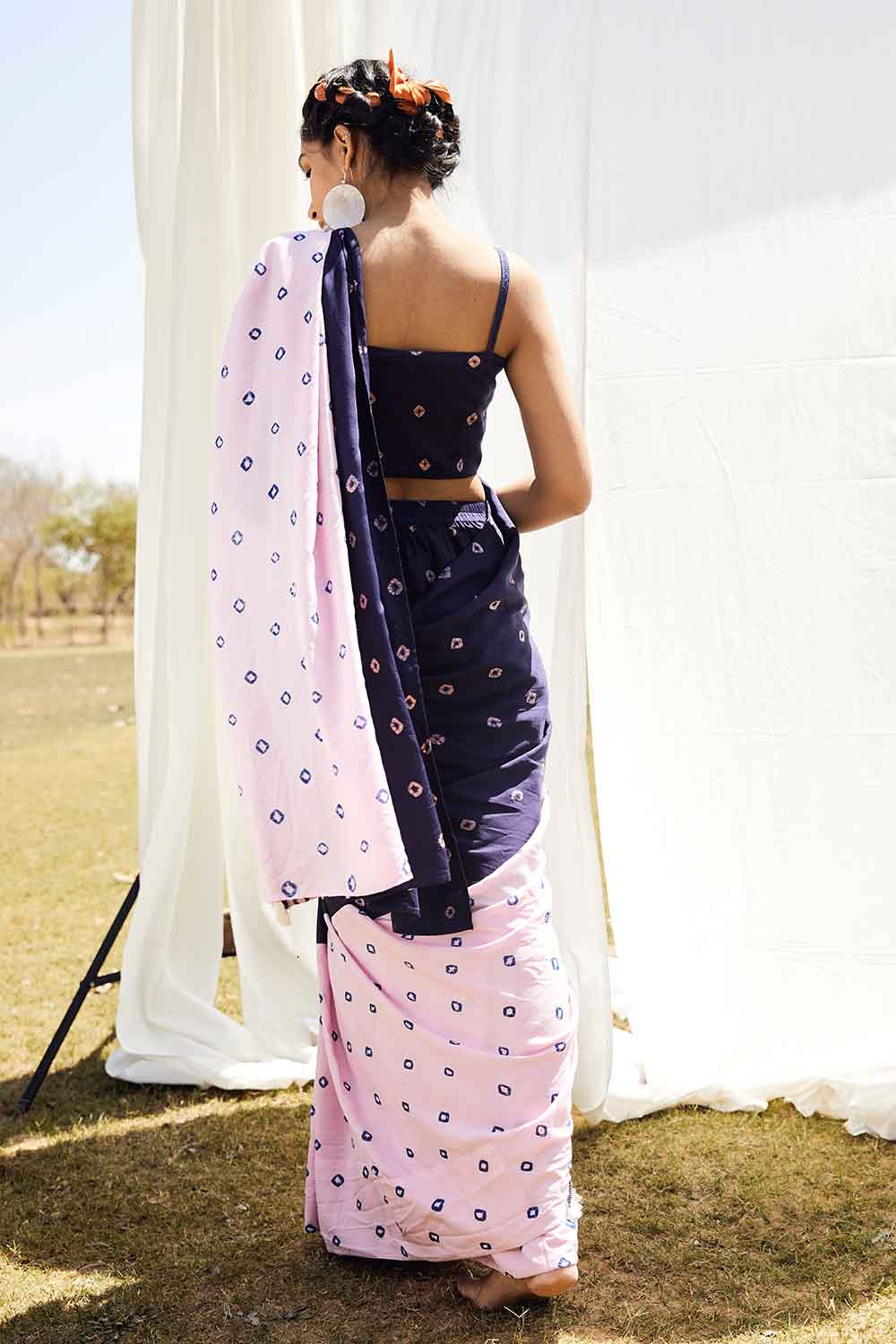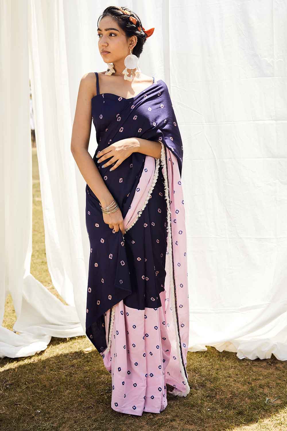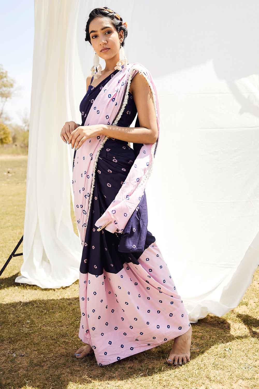 For bandhej, the fabric to be dyed is tied very tightly at different points and then dyed with extraordinary colors. These knots then don't let that part catch color and allow it to stay as the base color of the fabric.
