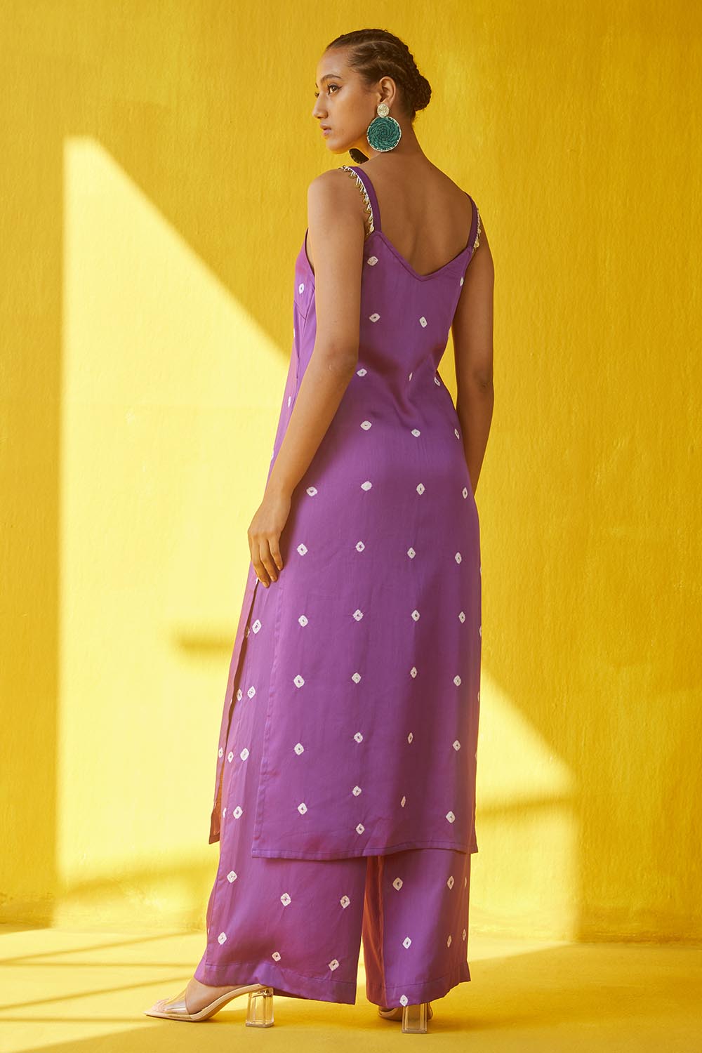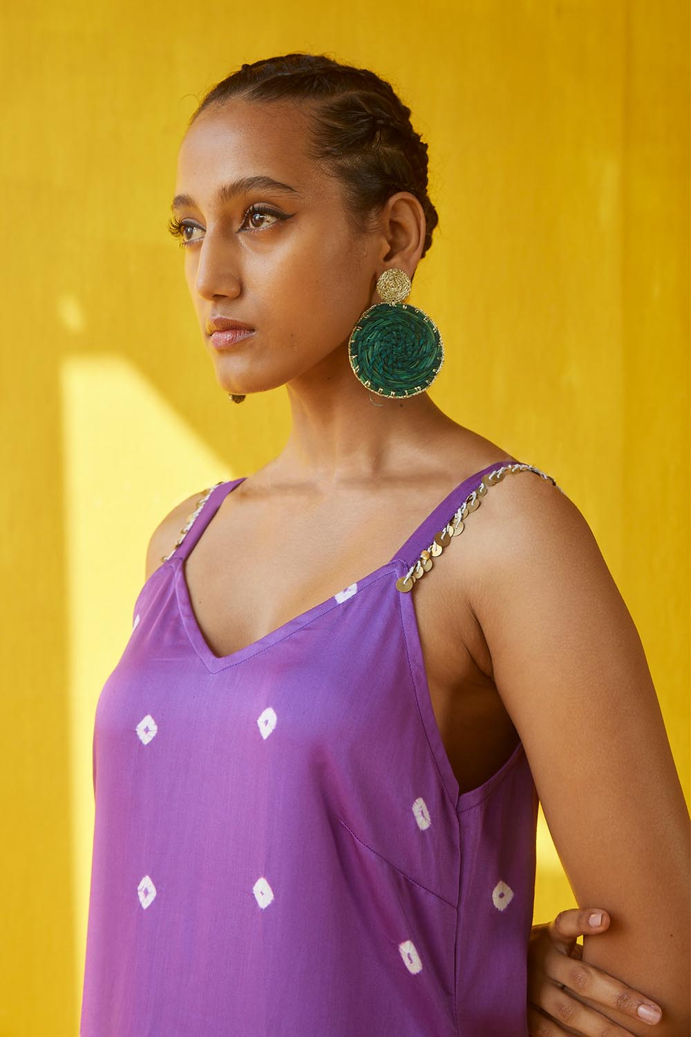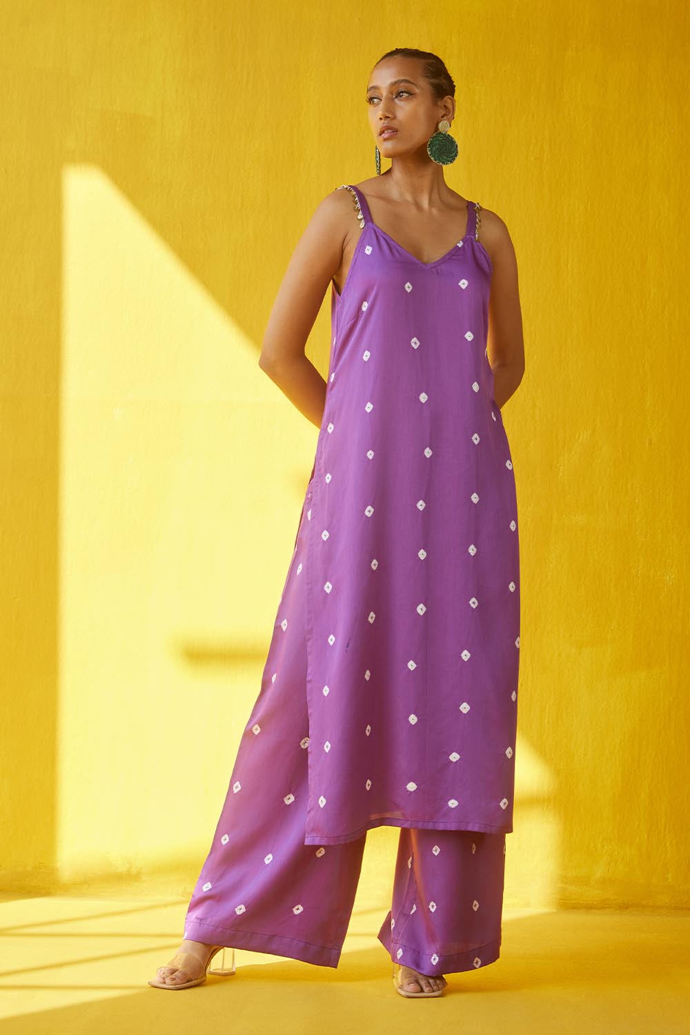 For bandhej, the fabric to be dyed is tied very tightly at different points and then dyed with extraordinary colours. These knots then don't let that part catch colour and allow it to stay as the base colour of the fabric.
