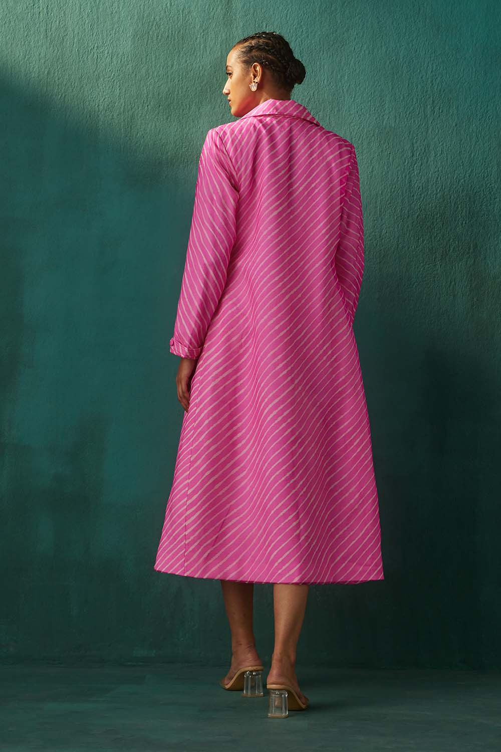 Leheriya is the wavy pattern created by tying and dyeing of fabric. The material is usually rolled diagonally or folded and then resisted by thread in the desired pattern before dyeing.