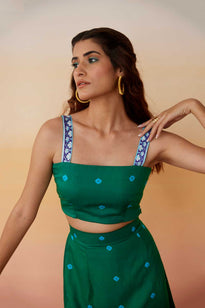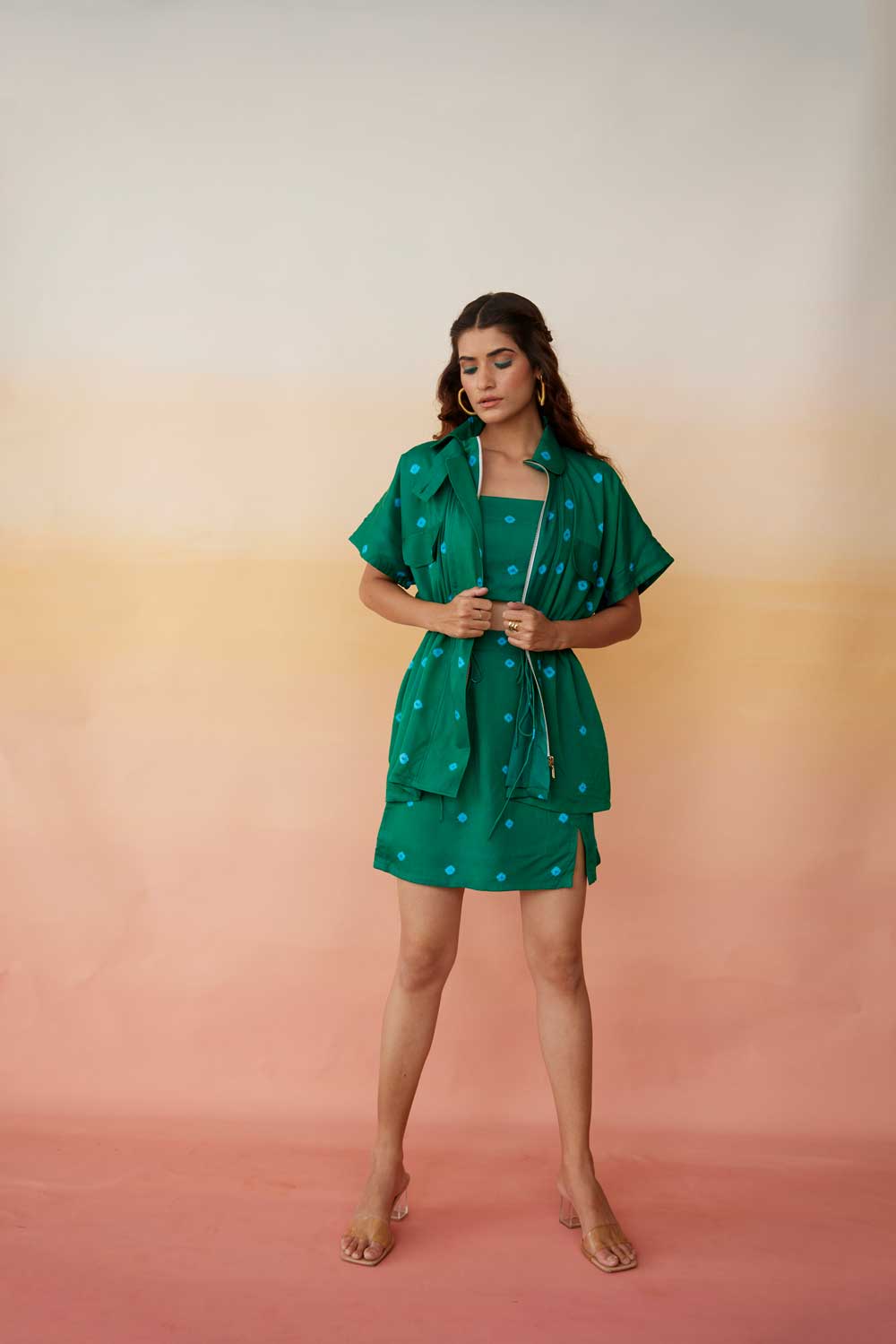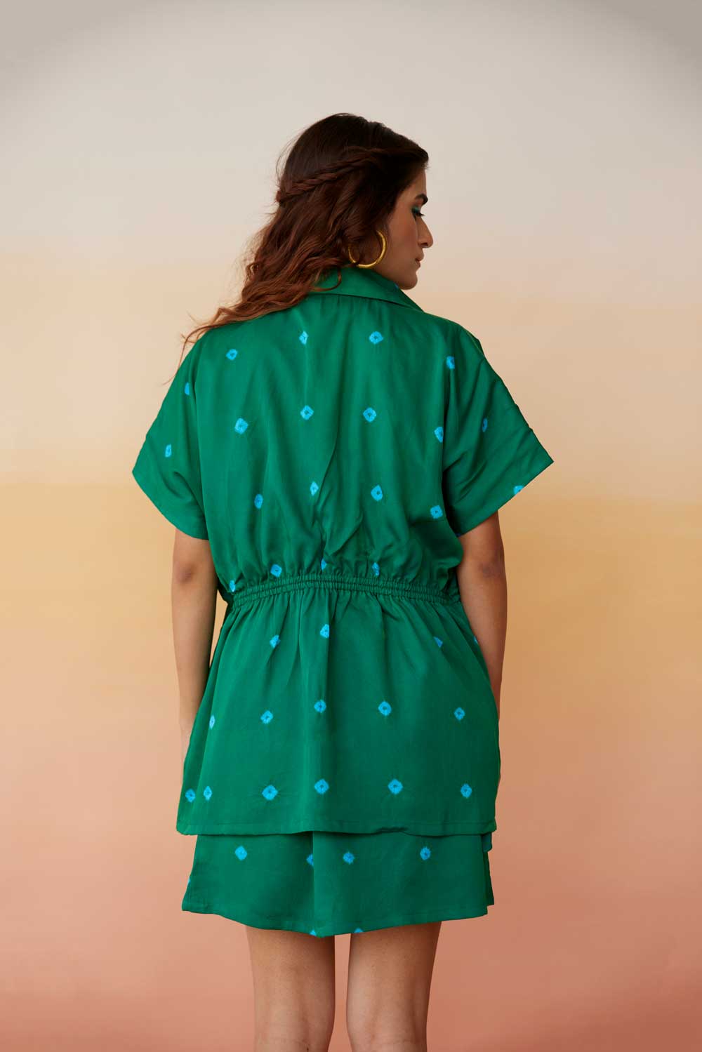 For bandhej, the fabric to be dyed is tied very tightly at different points and then dyed with extraordinary colours. These knots then don't let that part catch colour and allow it to stay as the base colour of the fabric.