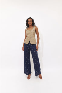 Block printing is a traditional technique of using engraved wooden blocks for printing designs on fabrics. The blocks are dipped in natural or artificial colours before being imprinted.